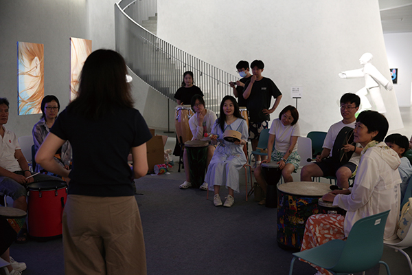 “艺术棚棚”特展配套活动是2025年美术馆的特色探索,该系列从美术馆自主策划展览出发,聚焦艺术疗愈方向,跳出传统的艺术欣赏与讲解形式,打造沉浸式的艺术体验活动。美术馆联合上海健康医学院附属精神卫生中心推出【鼓动心声.疗愈之旅】鼓圈音乐疗愈活动,由资深心理治疗师带领,以即兴打击乐演奏的形式搭建集体互动场域,让参与者在节奏共鸣中释放压力、增进人际联结,两场活动吸引了不少观众报名参与;美术馆又携手聆心心理Studio开展【正念音乐疗愈沙龙】,以手碟、颂钵、水晶音叉打造沉浸式声音浴体验,让参与者在舒缓的声波中放松身心,感受艺术与心理疗愈结合的独特魅力。这类疗愈型活动的尝试,丰富了公教活动的形式,也让艺术的温暖触达更多人的内心。
