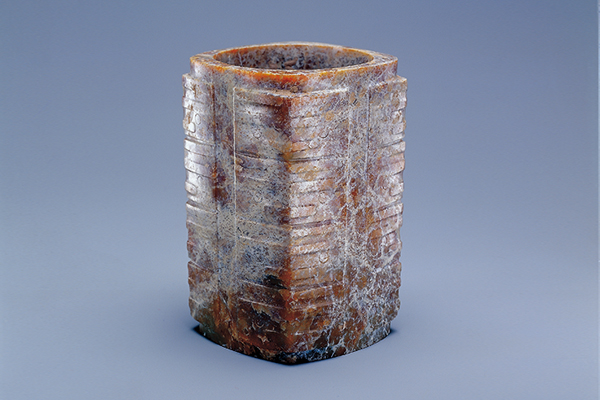 说明此时期最高统治者享有至高王权和威严神权的双重权利,是原始政教合一的表现。其中玉琮有单节、多节之分,是良渚文化等级最高、功能最复杂的礼器;玉璧尺寸较大,十分厚重,多为素面,部分有鸟纹装饰,特别是鸟立于三层祭坛之上的样式十分神秘。相较于琮和璧而言,钺是良渚文化玉器中发现数量较少的高等级器物。其完整形态还需安装象牙或木质手柄,同时柄的上下两端还配有精美端饰。