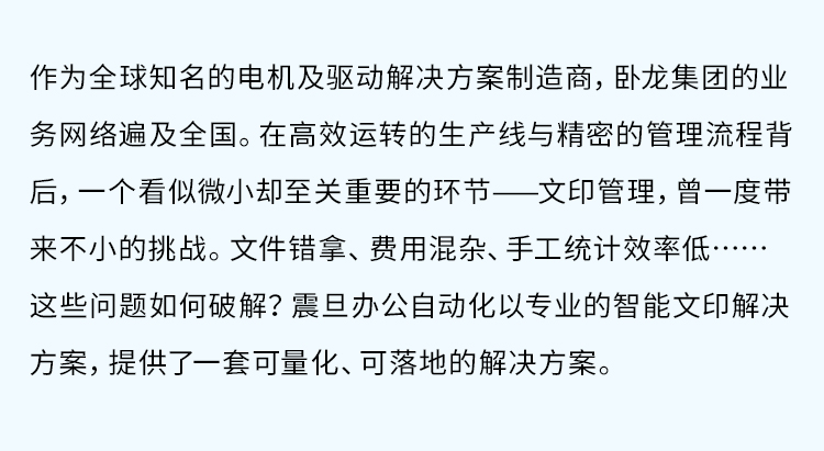 费用明晰,管理无忧|看卧龙集团如何借力震旦,实现文印管理数字化提升