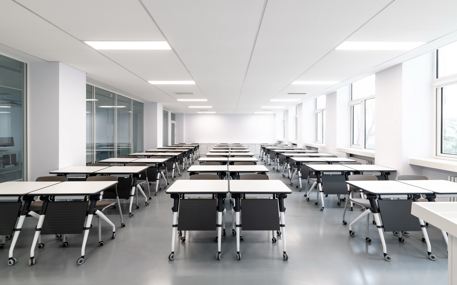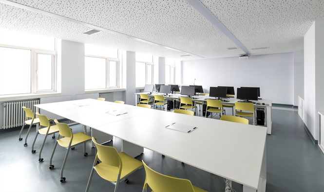 双通道和多通道型培训教室,有助于学生将注意力集中在导师身上,适合不需要太多互动形式的课堂教学。