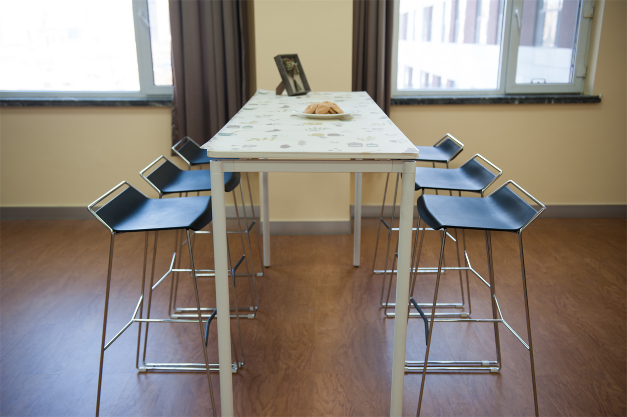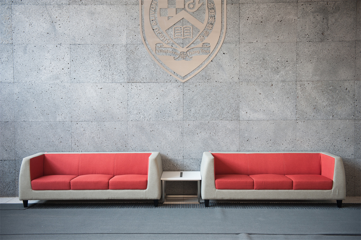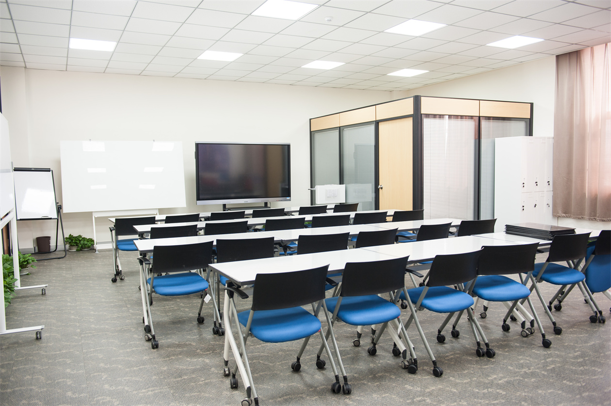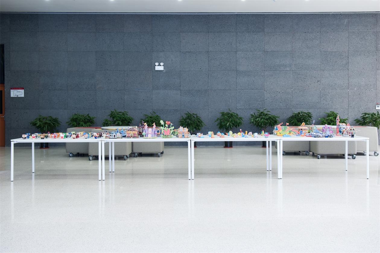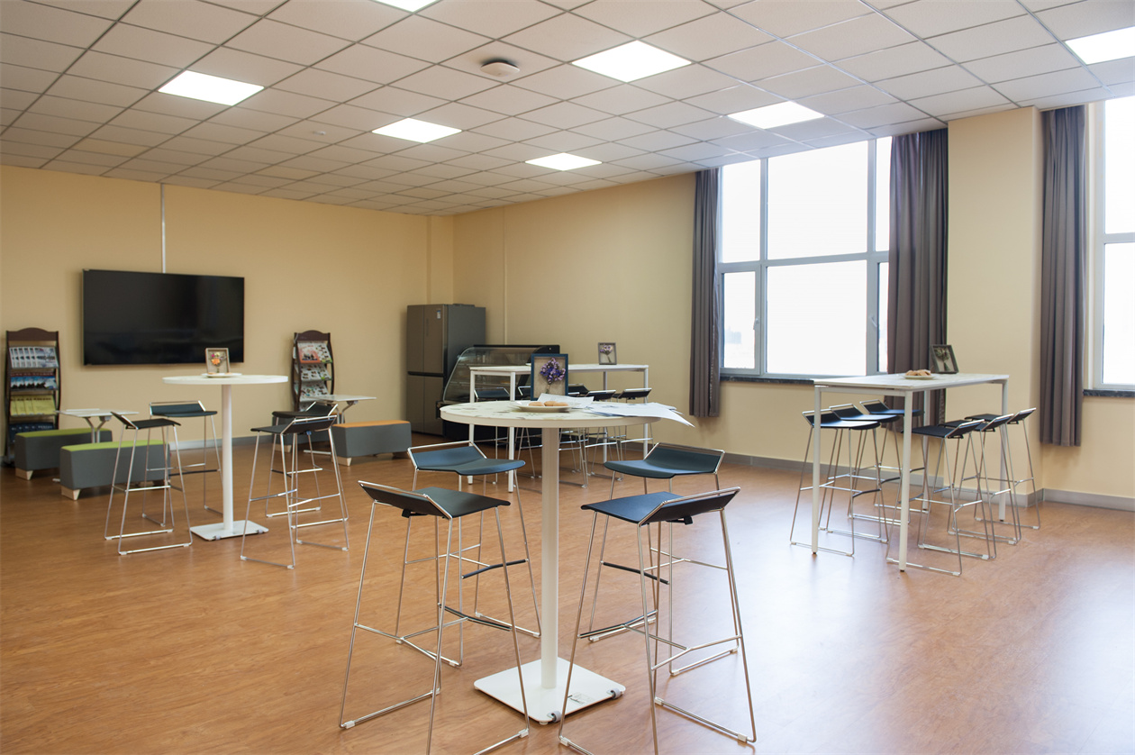 走进学校教学楼,沿着蓝灰色为主调的墙壁向前走,引导至明亮而洁净的接待大厅,这里既是进入学校的走廊,也是展现学生们才华的舞台,几步之外有一组舒适的沙发,供等候的家长们休息,温馨的气氛盎然一室。