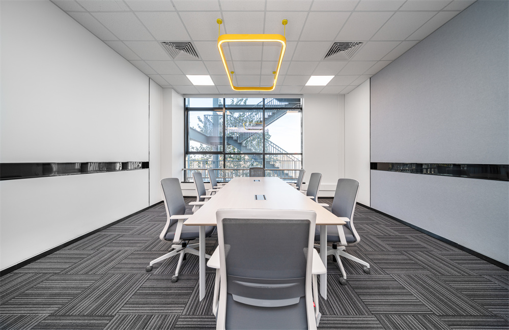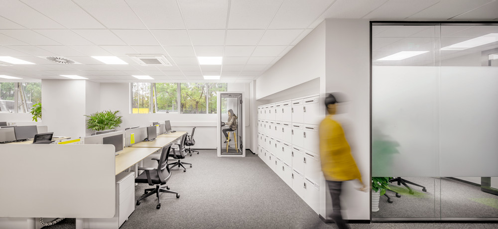职员区域配备升降桌、健身房、咖啡吧、冥想室、创新室等功能区域,将企业色彩延伸至空间和家具,创造更多的融洽与和谐。