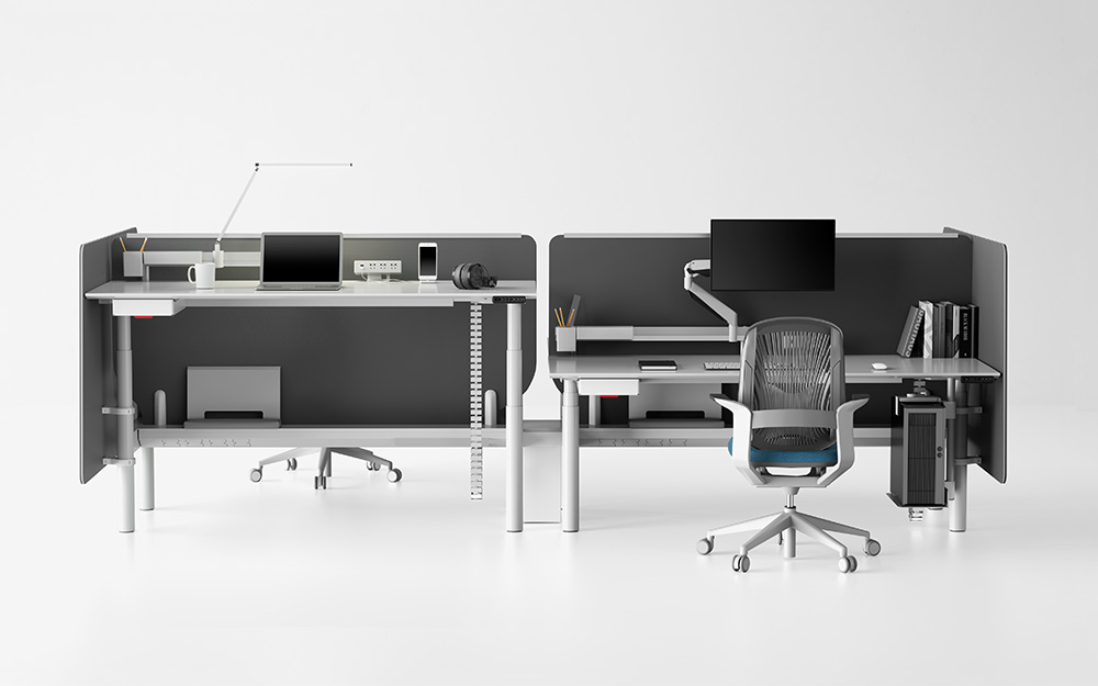 PET材质的半包围侧屏,伴随桌板同步升降,可以有效的保护个人隐私,阻隔噪音,为使用者营造专属的个人空间。