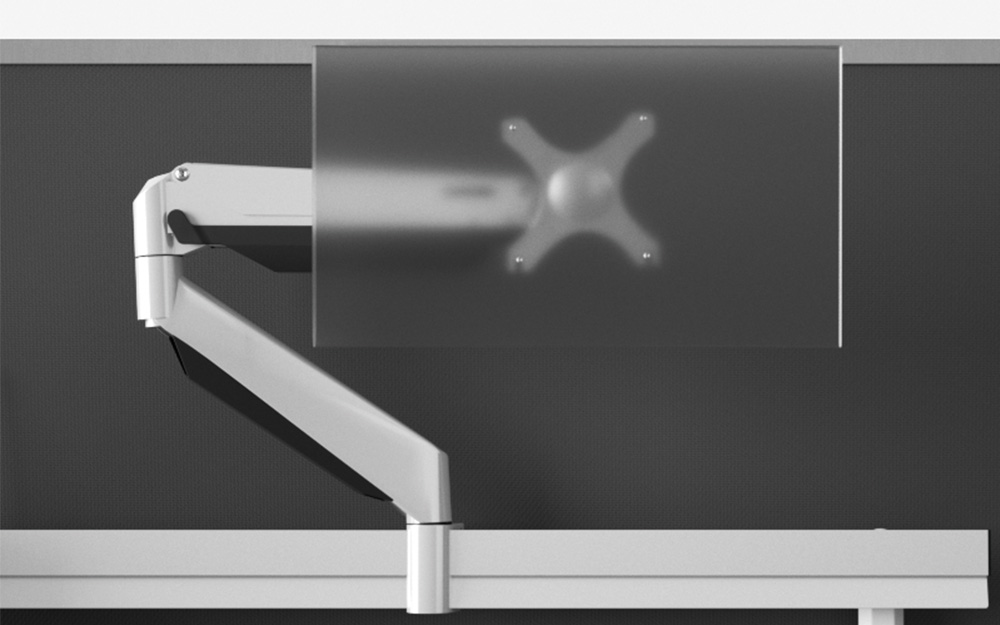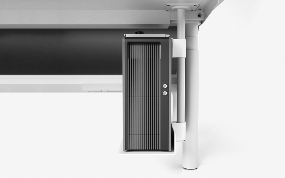 桌面采用Inpower电源解决方案,外形美观,品质可靠。桌面可配置铝合金横梁,承载显示器支撑臂、Inbox收纳盒、台灯等周边产品,且依使用需要在横梁上灵活移动。