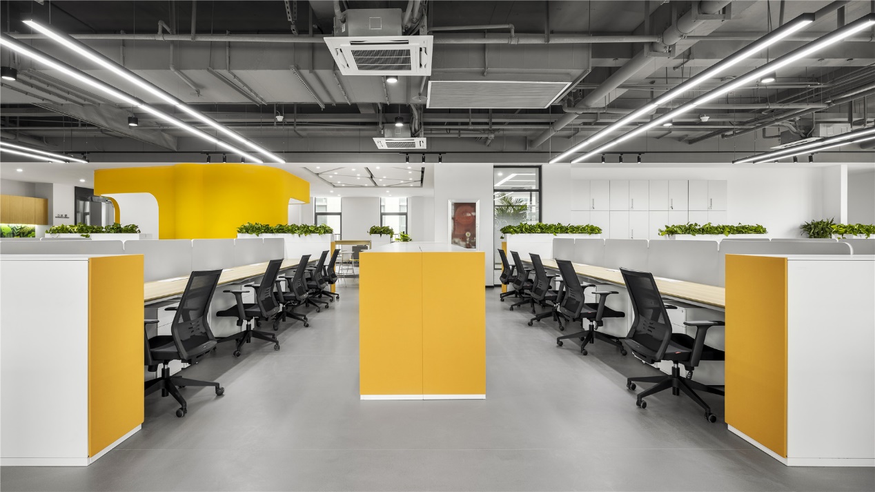 职员开放工位,方便沟通交流,屏风在一定程度上减轻声音带来的干扰,为员工提供专注思考的空间。