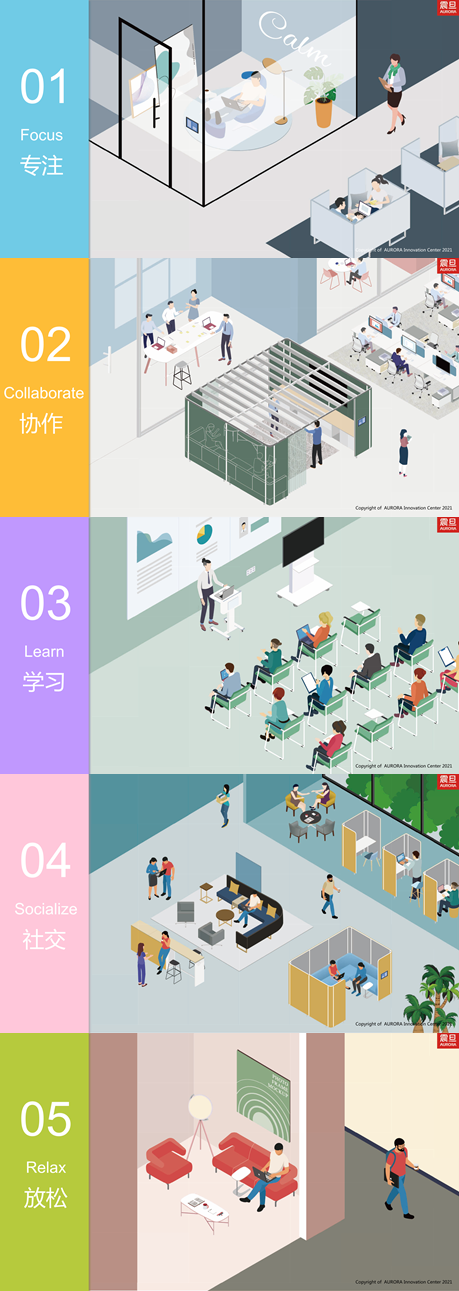 在五种办公模式的作用下,提升办公环境的舒适感,员工个人或是团队能够更有效率地完成工作,企业能够更好的应对这个时代的快速变化,创造更多的价值。