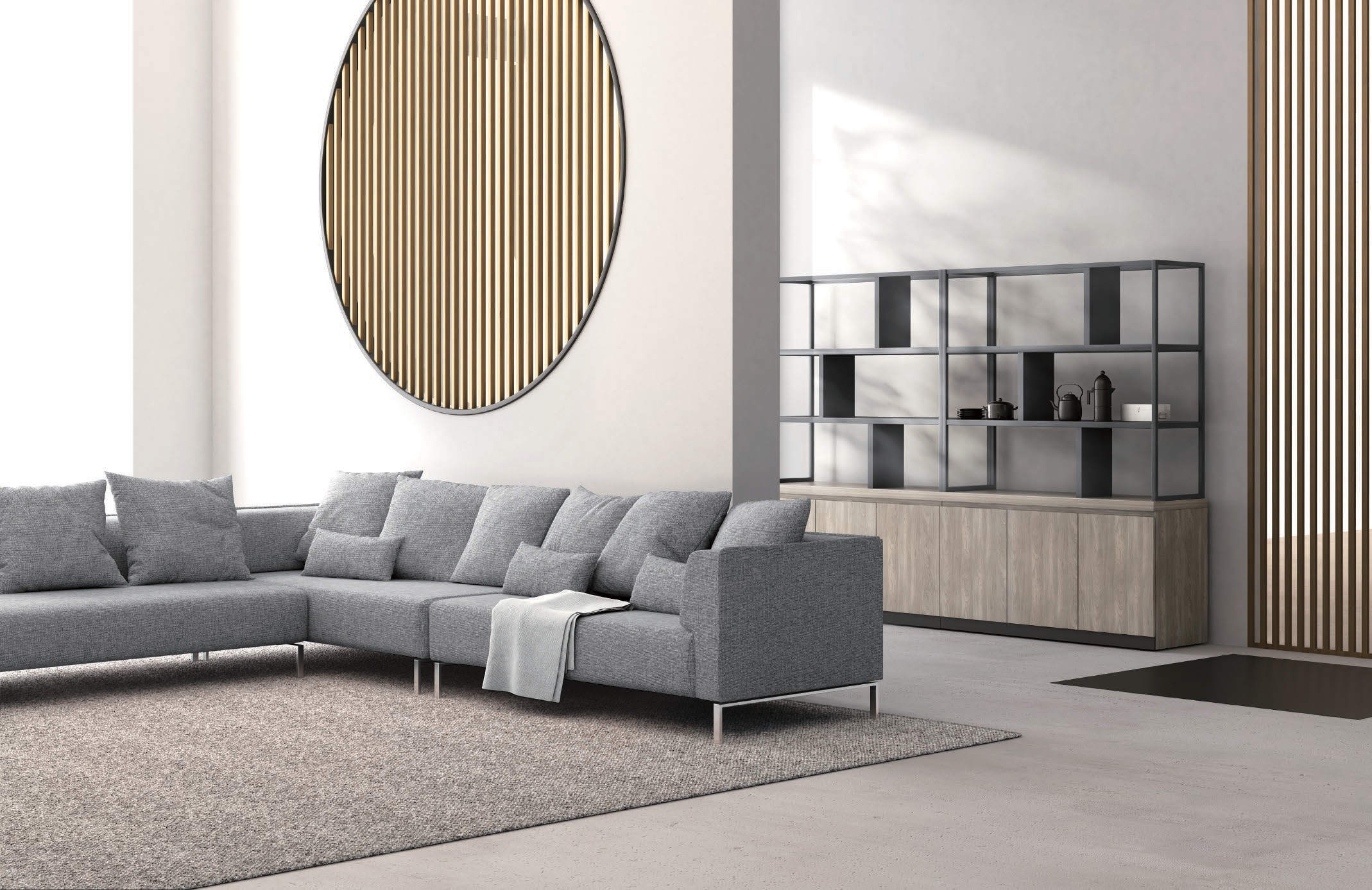 背柜满足封闭式收纳需求的基础上,提供更多的展示开放式收纳功能,营造“空”与“静”的空间特征,是现代平衡美学的升华。