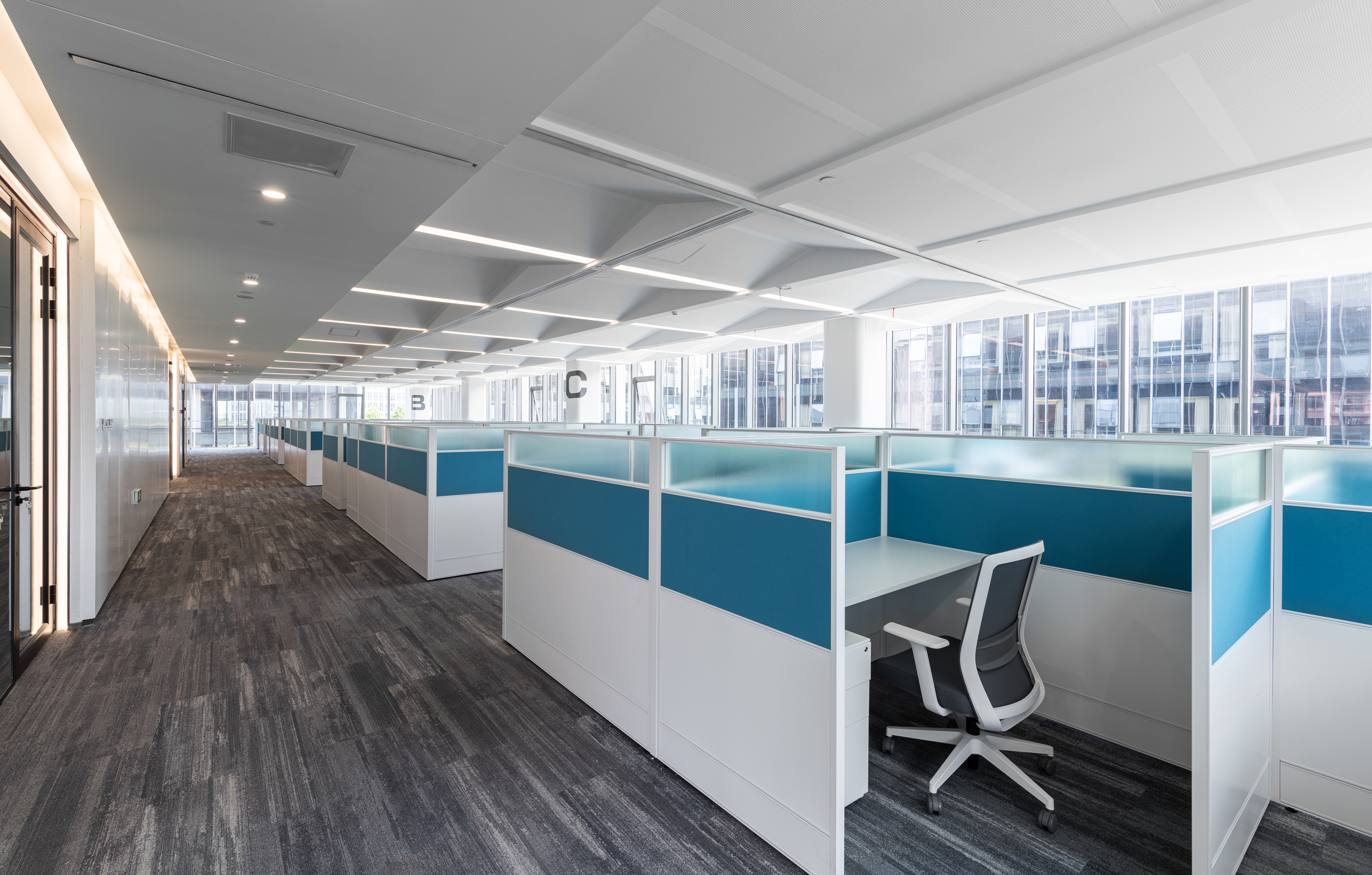 立面屏风,降低噪音,保证职员私密性,打造更适合职员专注工作的空间。
