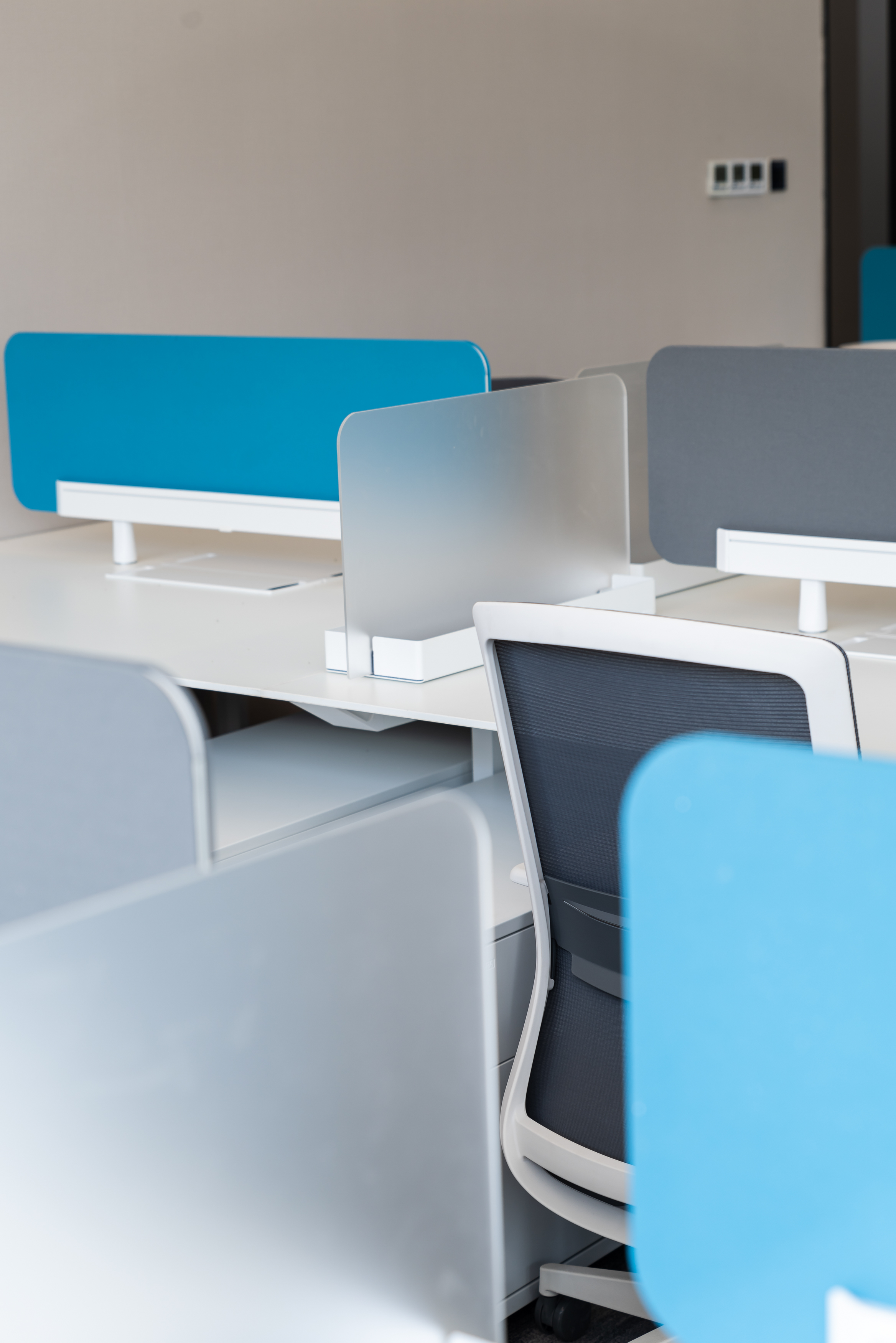 桌上屏风,不仅保证了空气的流通,更方便彼此之间的沟通,帮助需要处理复杂任务的职员进行协作,更好的完成项目。