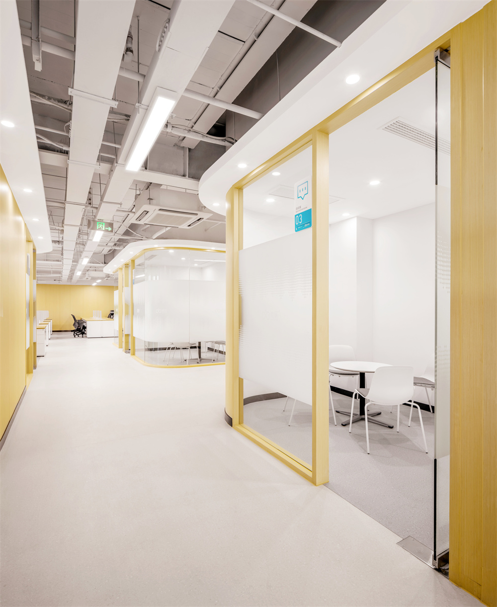 开放与合作成为微医办公室设计的亮点。玻璃隔墙会议室划分个人专注和团队合作的边界,满足activa灵动工作需求。