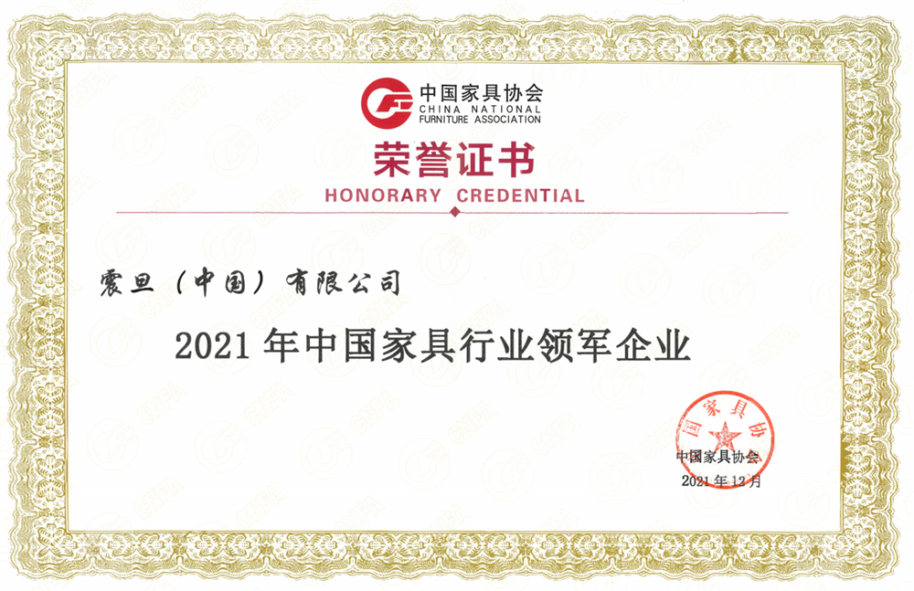 震旦凭借深厚的中华文化底蕴和Activa灵动办公理念,为顾客提供更具人性与效率的整体解决方案,荣获由中国家具协会颁布的“2021年中国家具行业领军企业”。