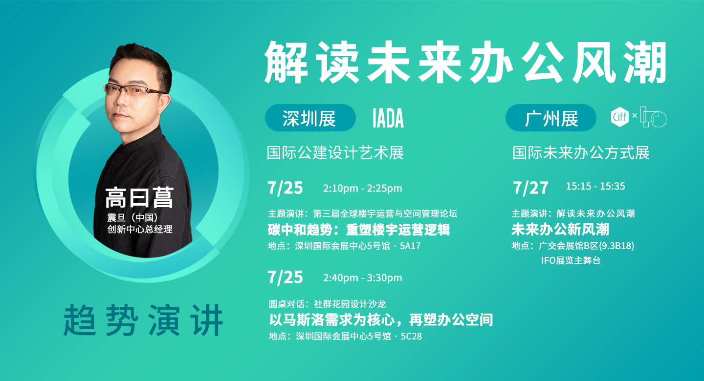 深圳时尚家居设计周暨国际公建设计艺术展上,震旦家具创新中心高曰菖总经理于7月25日获邀参与“第三届全球楼宇运营与空间管理论坛”主题演讲及“社群花园”设计沙龙对话, 结合碳中和趋势、马斯洛需求等前沿话题,解构后疫情时代的“未来办公风潮”。