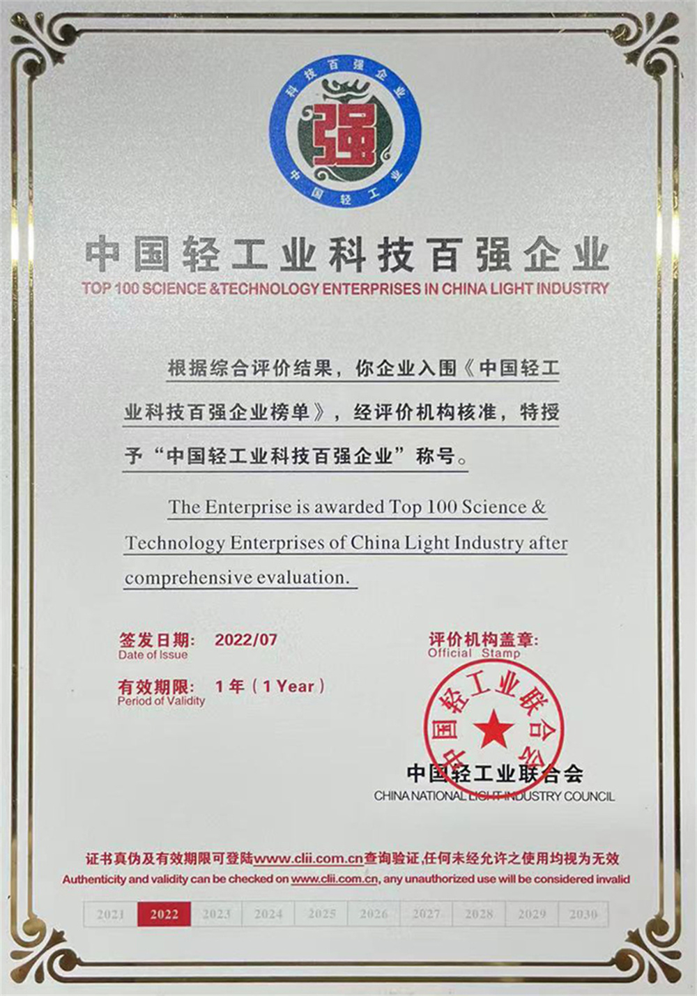 “中国轻工业百强企业高质量高发展高峰论坛”是中国轻工业联合会开展的企业竞争力评价工作,榜单在行业中具有权威性和广泛影响力。上榜企业是轻工行业的优秀代表,也是引领中国轻工业从制造大国向制造业强国迈进的先锋力量。