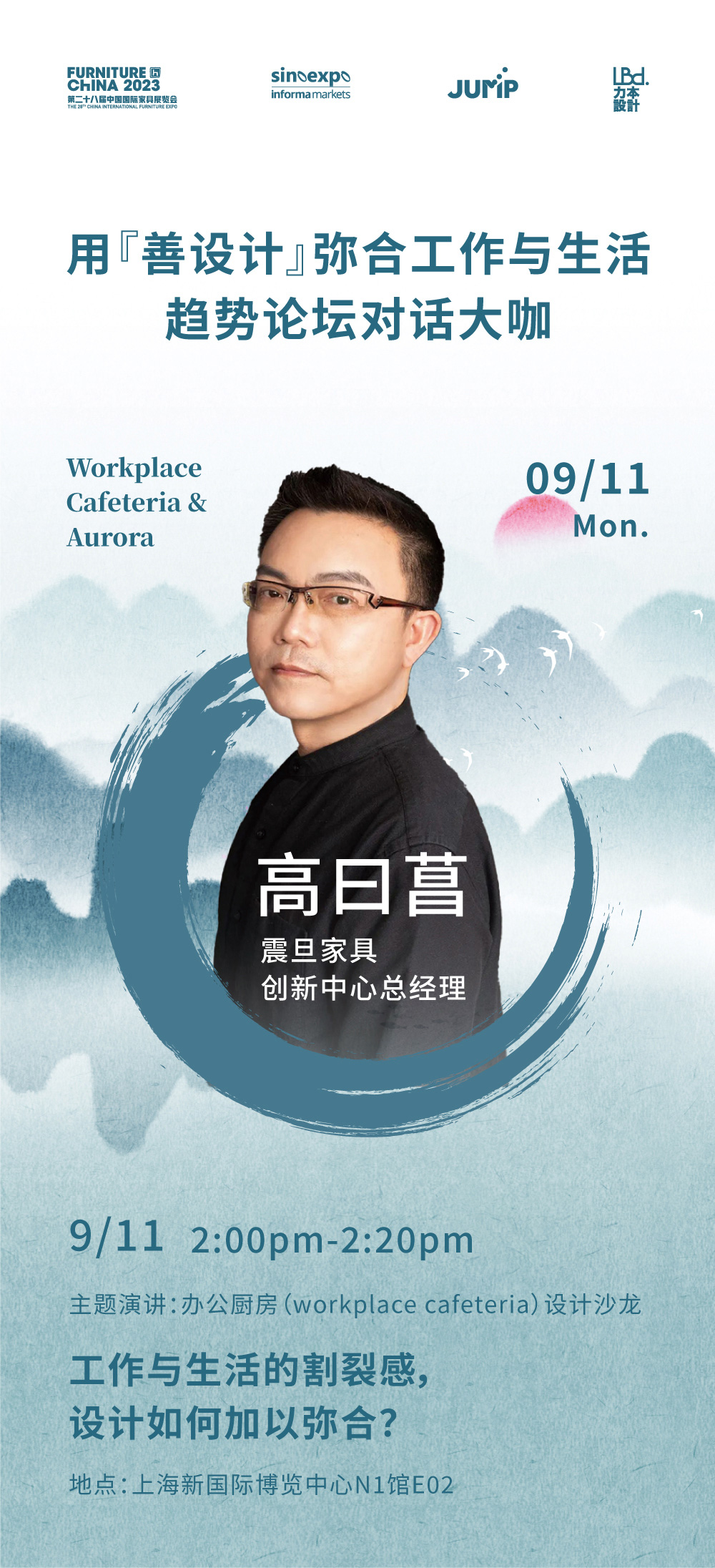 9月11日震旦家具创新中心高曰菖总经理受邀参与:办公厨房(workplace cafeteria)设计沙龙。将针对【工作与生活的割裂感,设计如何加以弥合?】主题分享其观点。