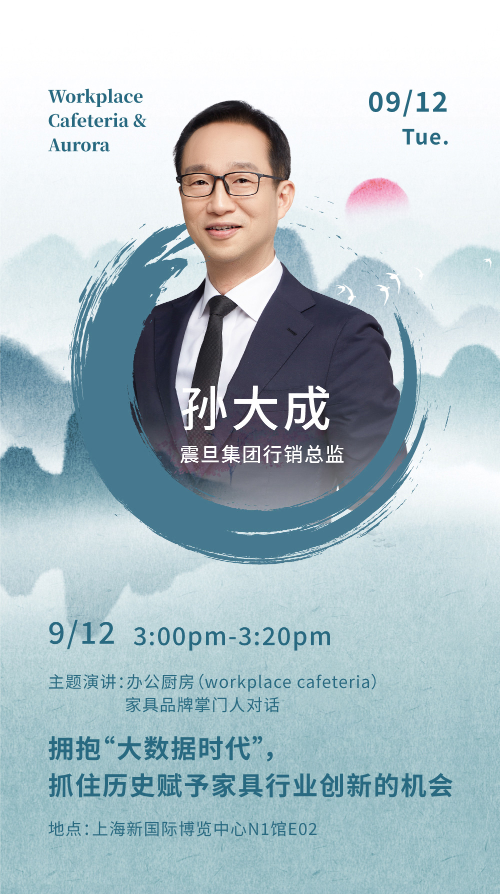 9月12日震旦集团孙大成行销总监受邀参与:办公厨房(workplace cafeteria)家具品牌掌门人对话。将针对【拥抱“大数据时代”,抓住历史赋予家具行业创新的机会】主题分享其观点。