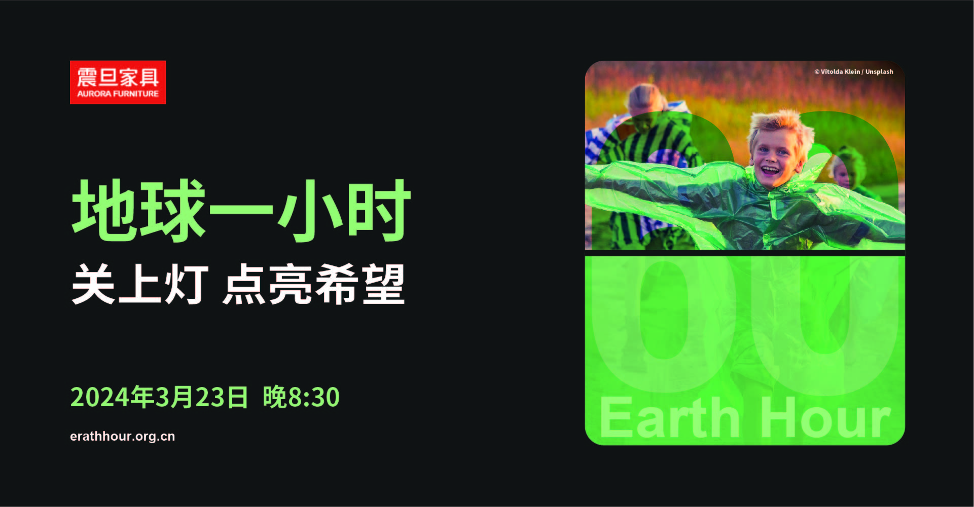 今年Earth Hour为3/23(六),响应主题为Switch off. Give an hour for Earth.(关灯一小时,与你一起让世界变好)。